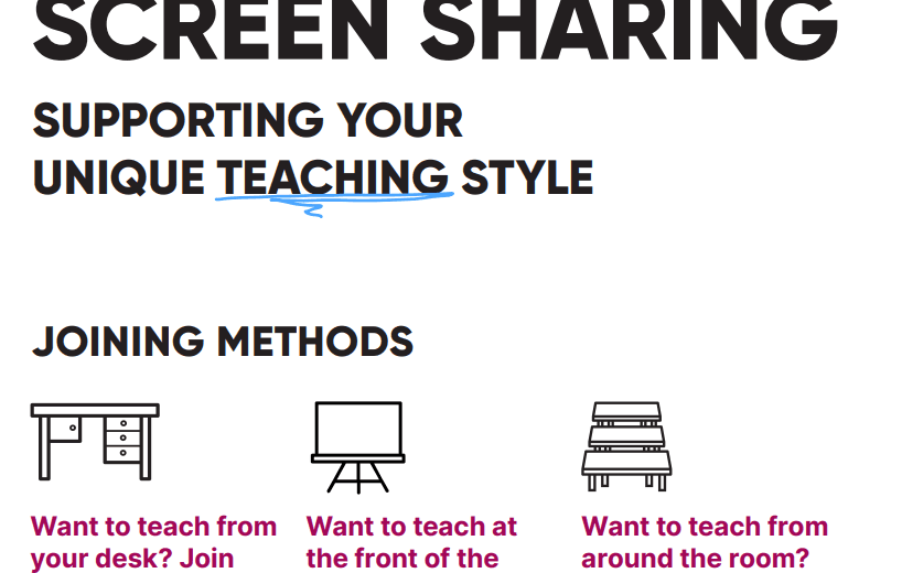 Technology like screen sharing software, should be integrated into your daily teaching life. As it enables main displays and hardware to become extensions of your device. Improving the accessibility of content and information for the class.