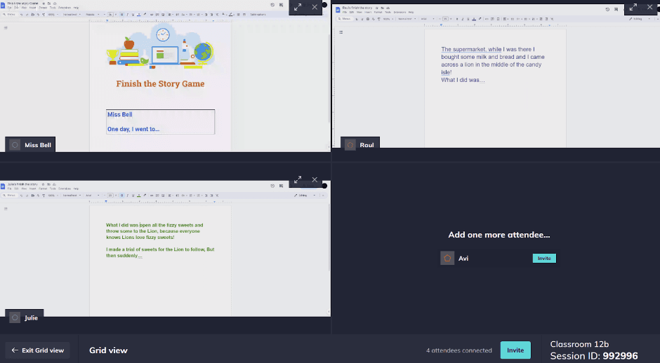 Grid View allows for multiple screens to be displayed, whether this is whiteboard comparisons or showing the thought process behind conclusions.